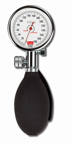 Dieses moderne Aneroid-Blutdruckmessgerät ist robust und handlich. Das Manometer ist shock protected, überdrucksicher und mit einem korrosionsfreien Messwerk ausgerüstet. Der seitlich angebrachte Schraubverbinder zur Einschlauchmanschette gestattet das rasche Auswechseln verschiedenartiger Manschetten. Ausführung in schwarz.. Skalen-Durchmesser 48 mm, shock protected.