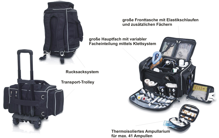 Variable, sporty teen doctor's bag with integrated backpack system. A space saver for extensive care.