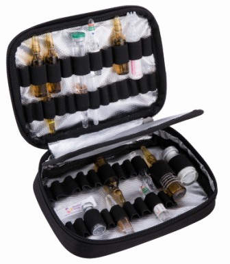 Isothermal ampoule holder with elastic loops for a maximum of 43 ampoules