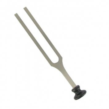 The A1440 Hz tuning fork with base is mainly used in the ENT field. It is used to study the air and bone conduction of sound. Among other things, the Rinne and Weber test the Gelle test be used with this model. When Rinne test is a tuning fork to vibrate, and the first patient with the Stimmgabelfuß to the spinous process behind the ear ("mastoid", lat mastoid process) attached. Once the patient is a sign, not to hear the tuning fork, it is held immediately prior to his ear. The patient can now hear the tuning fork, the channel test is positive, he does not hear it, the test is negative.
